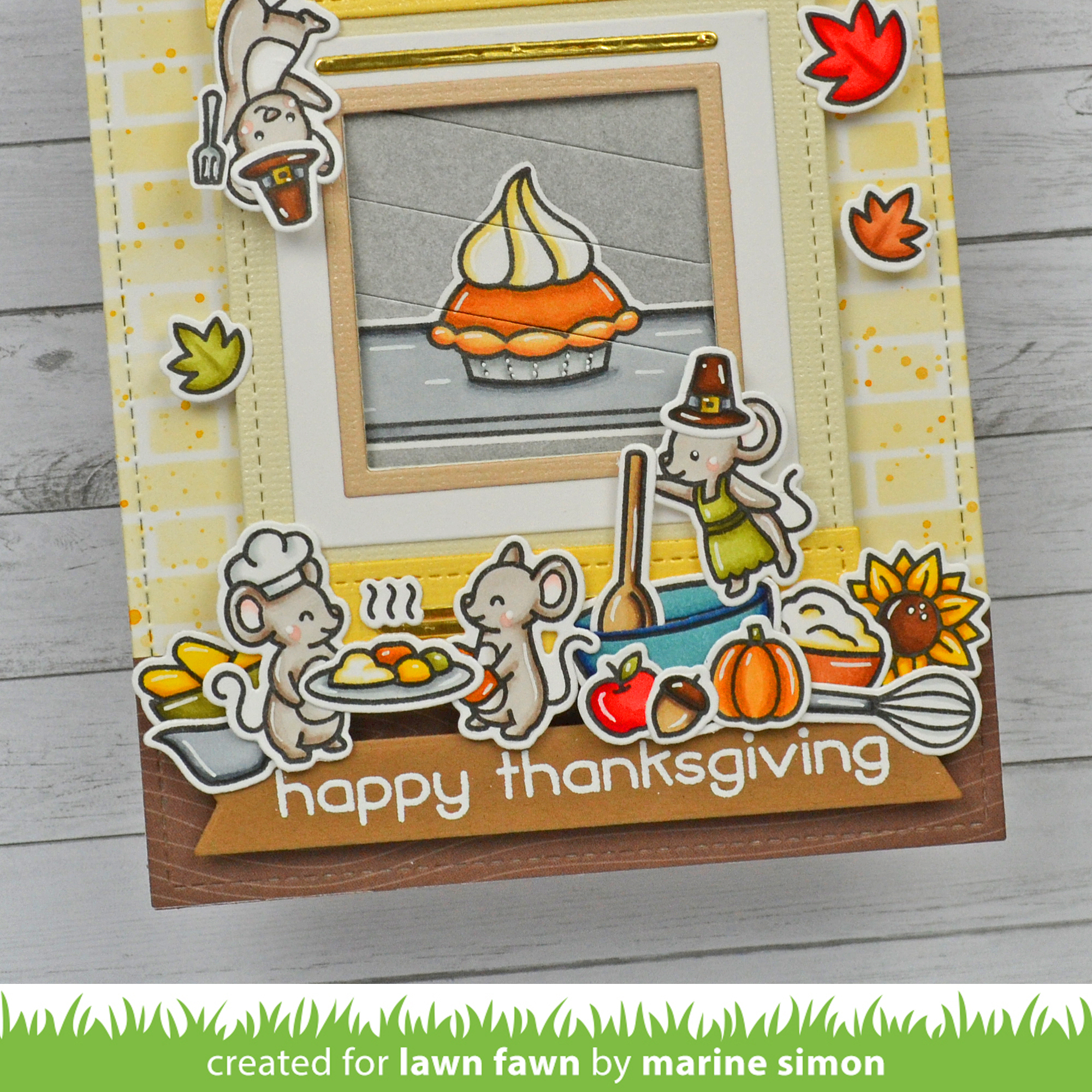 I started off by cutting a large Eyelet rectangle panel out of Strathmore bristol smooth cardstock, I masked the scalloped edges off with washi tape and created a cute brick pattern using the Brick Background stencil along with kitsch flamingo oxide ink. Next I splattered water all over the panel and used a paper towel to dry it, I mixed some picked raspberry oxide ink with water and added pink splatters to my panel, and then I did the same with copic opaque white ink. I also cut a vellum panel using the second largest Stitched Torn Rectangle die, added white splatters to that panel, and then put both of my panels aside to dry.